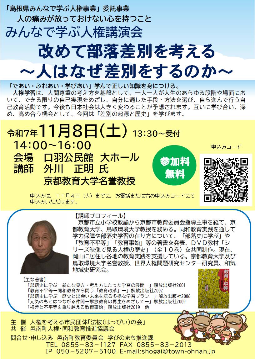 みんなで学ぶ人権講演会 改めて部落差別を考える~人はなぜ差別をするのか~