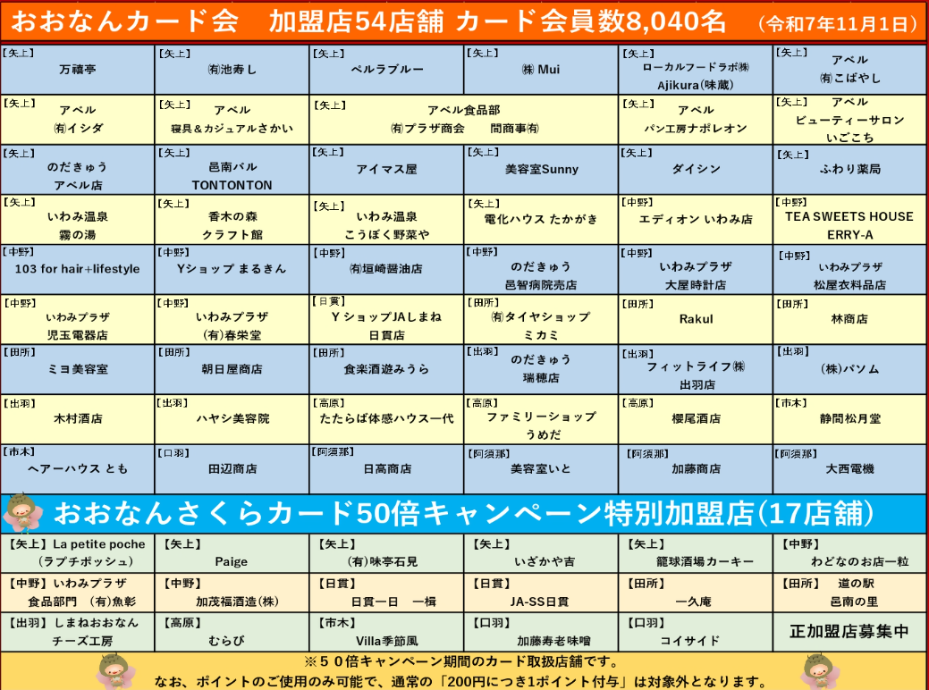 「おおなんさくらカード」にポイント50倍キャンペーンの期間中に集めた特別ポイントは10月31日に一斉に付与されています。付与された特別ポイントは有効期限がありますのでお早めにご利用ください。
